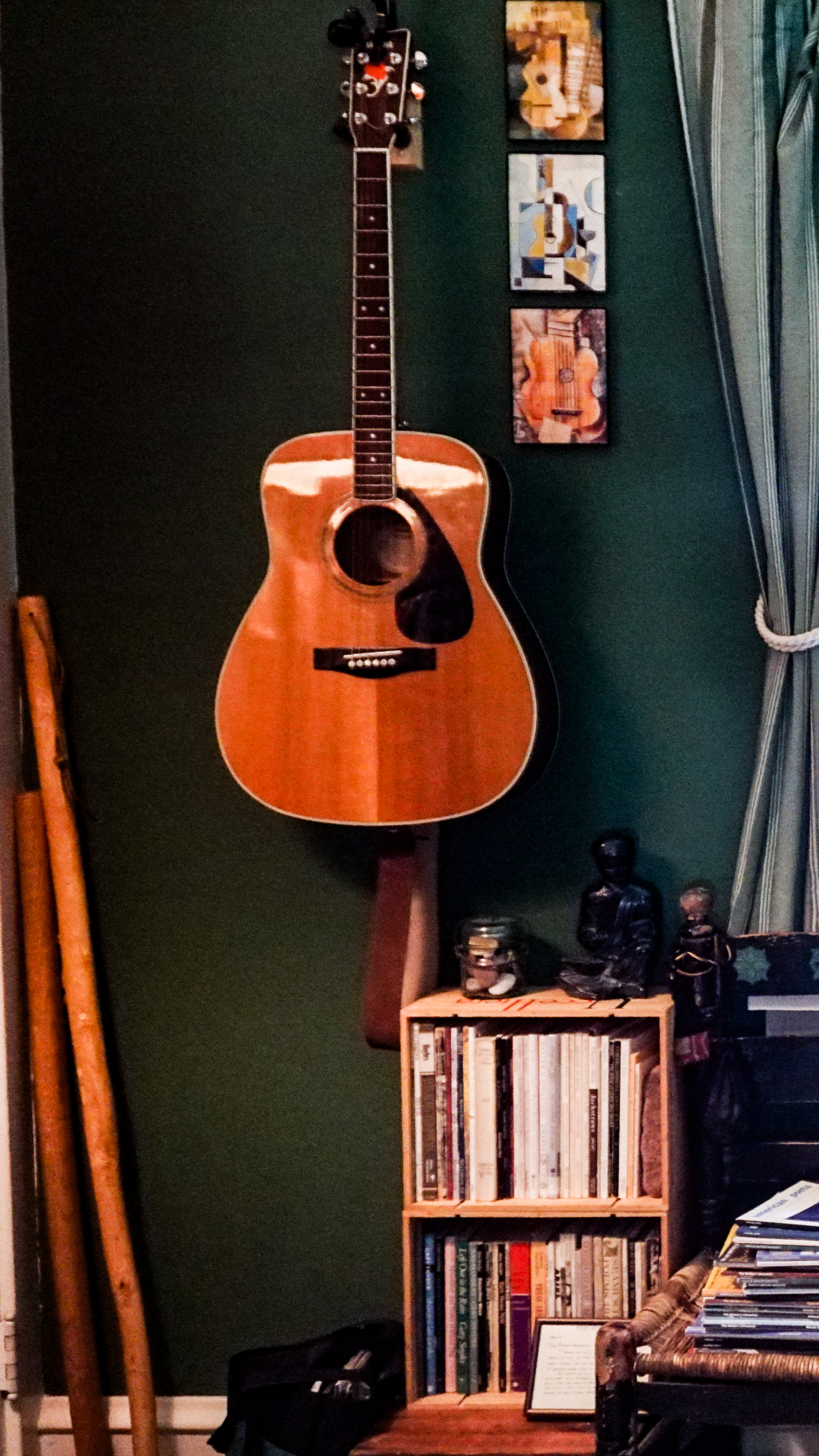 and cradling an armload of blue needles