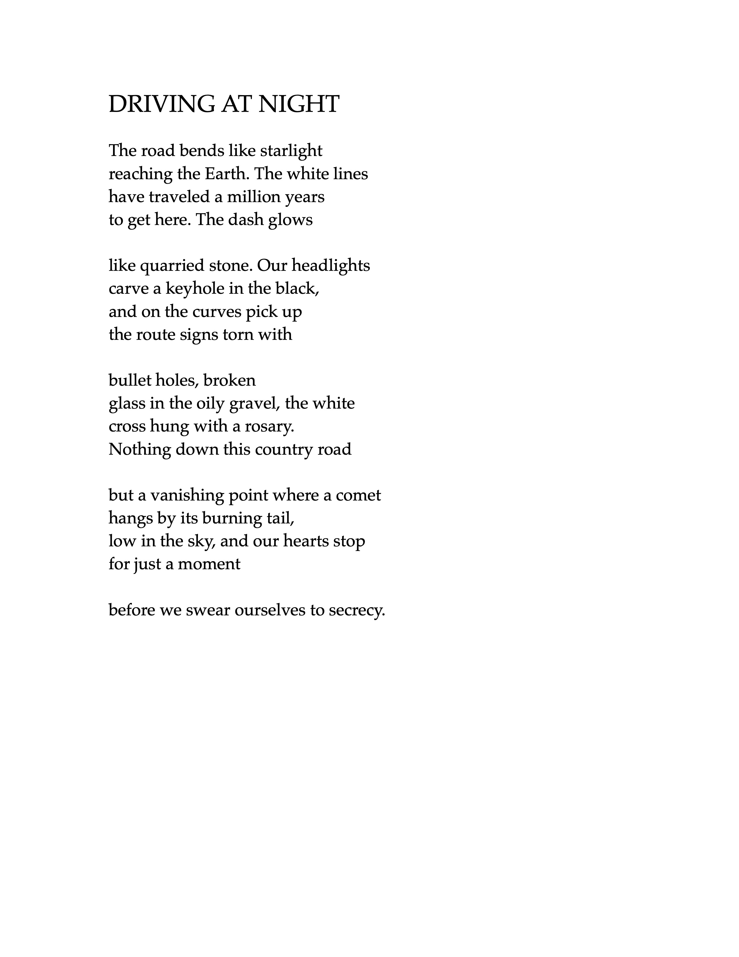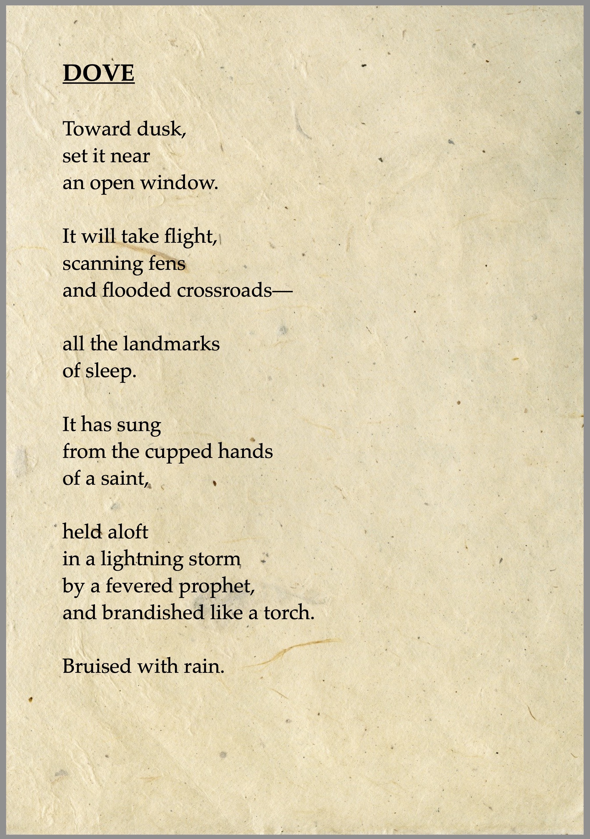 The radiant poems in The Discovery of Heaven chapbook are inflected with a lean yet intimate voice that reinforces the possibility of authentic poetic connection between poet, reader, and every earthly wonder. In language both vigorous and supple, these poems explore a common terrain shared by both human and wild forces, as in “Dove,” where the poet exhorts the reader: